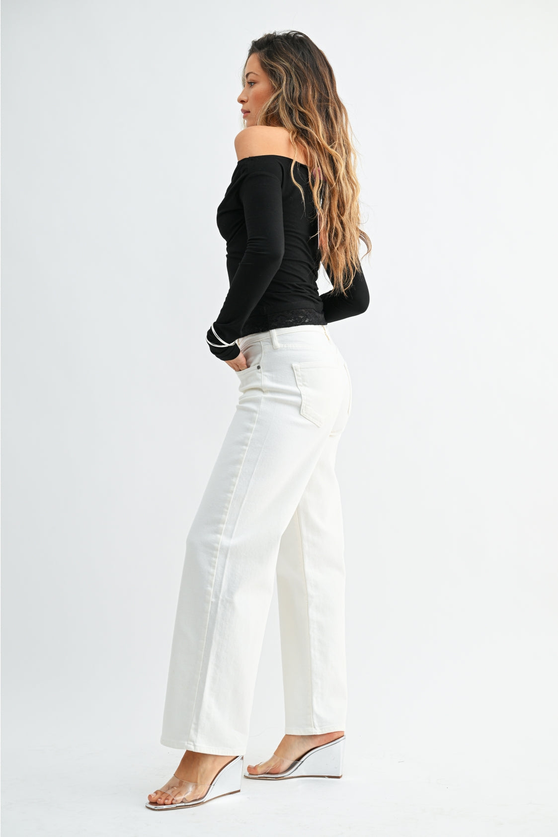 Meet your new go-to everyday denim in a fresh, off-white wash. These jeans feature a relaxed, straight-leg silhouette that feels effortlessly laid-back while still looking clean and polished. Designed with a classic mid-to-high rise and just the right amount of structure, they offer a flattering fit through the waist and hips before falling into a full-length, easy leg. Finished with traditional five-pocket styling and a crisp, versatile finish, they’re the perfect pair for styling with everything from soft knits and breezy blouses to your favorite everyday basics.