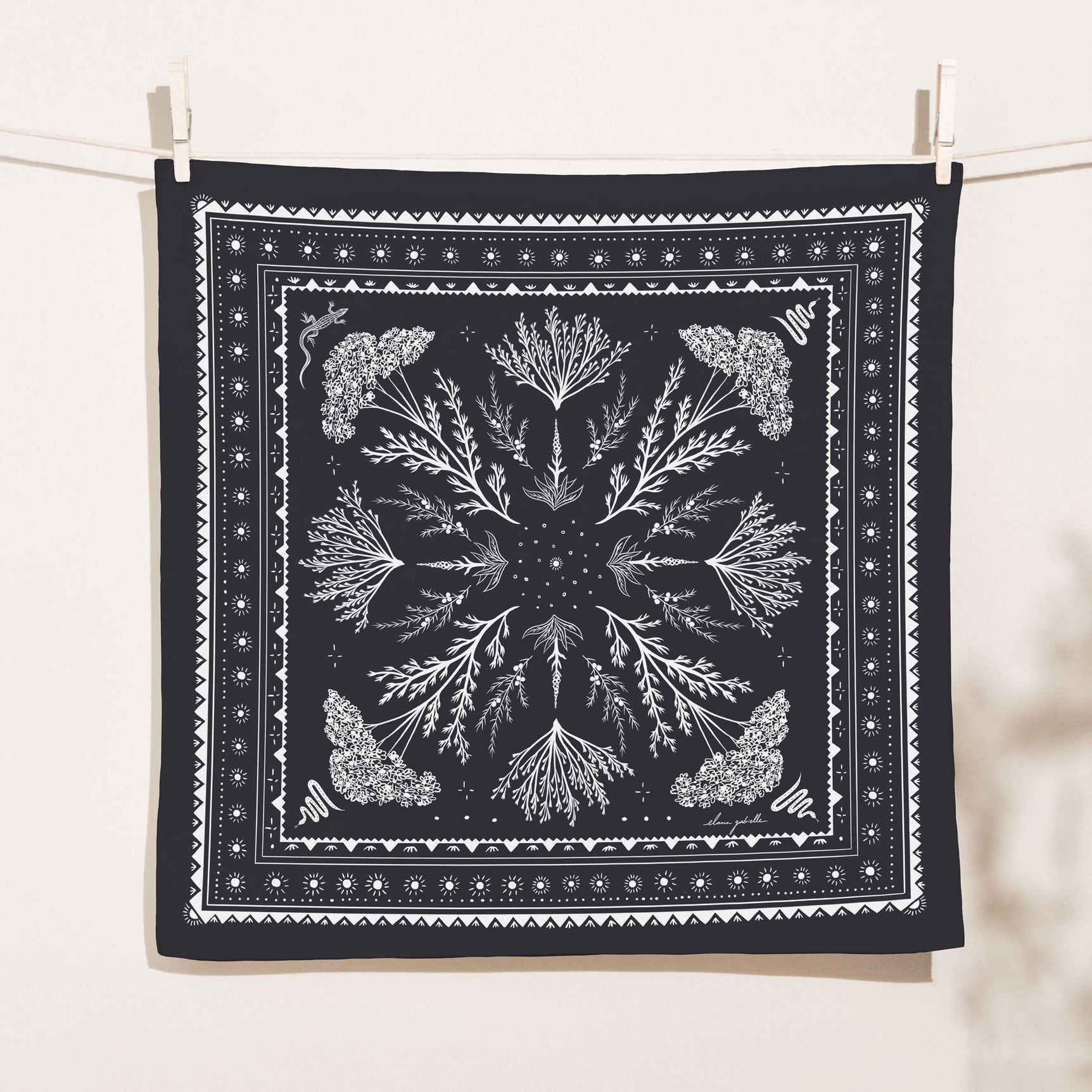 This screen-printed bandana is perfect for carrying as an everyday keepsake. Wear it around your neck or in your hair, wrap up snacks and gifts, hang it as a tapestry, and so much more. Bandanas are incredibly versatile and have been worn and used functionally for generations by sailors and seafarers, farmers and cowgirls. This beautiful and durable textile is a staple of the contemporary wardrobe and makes a thoughtful, nature-inspired gift for gardeners, adventurers, or anyone enchanted by the small wonders of the outdoors.