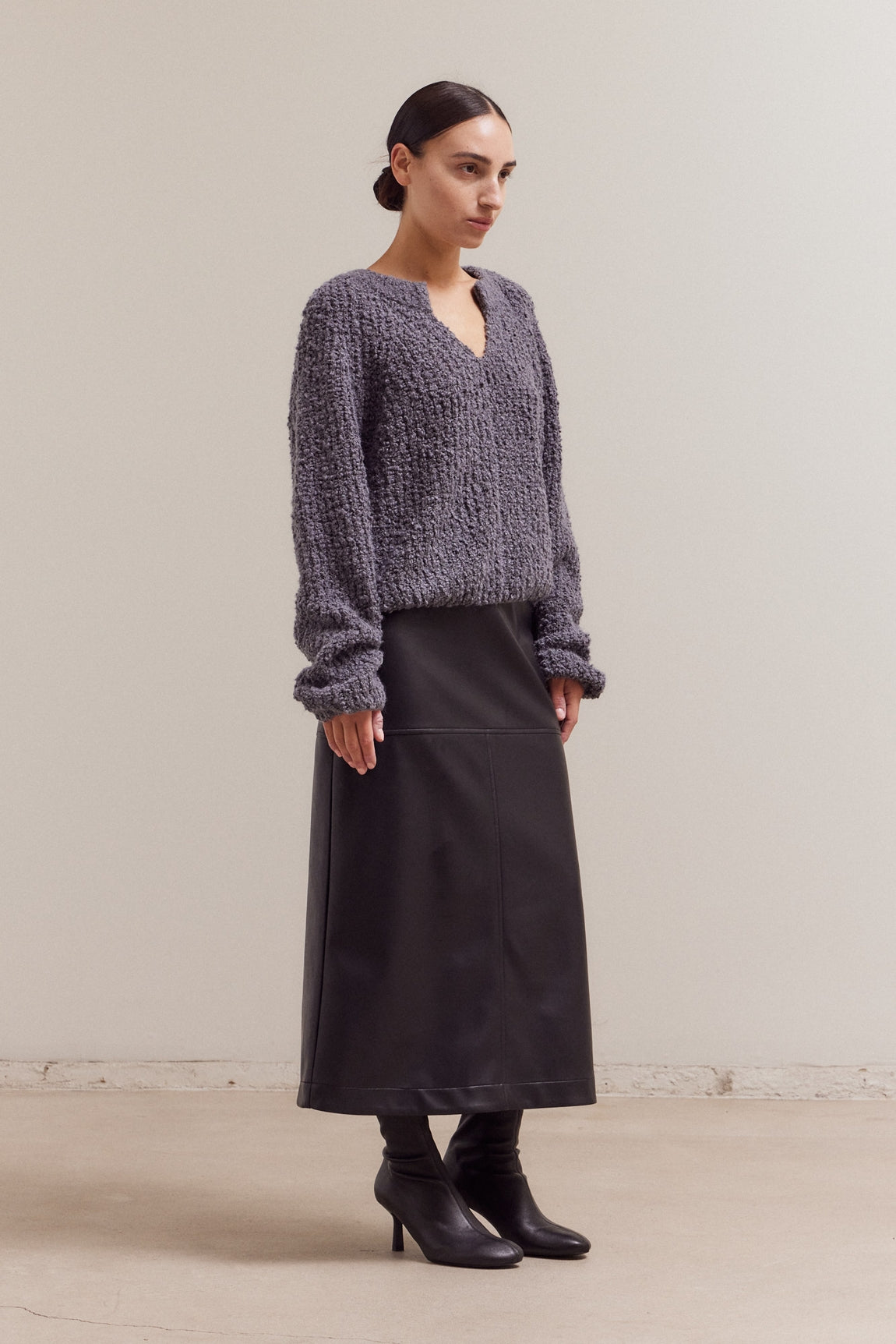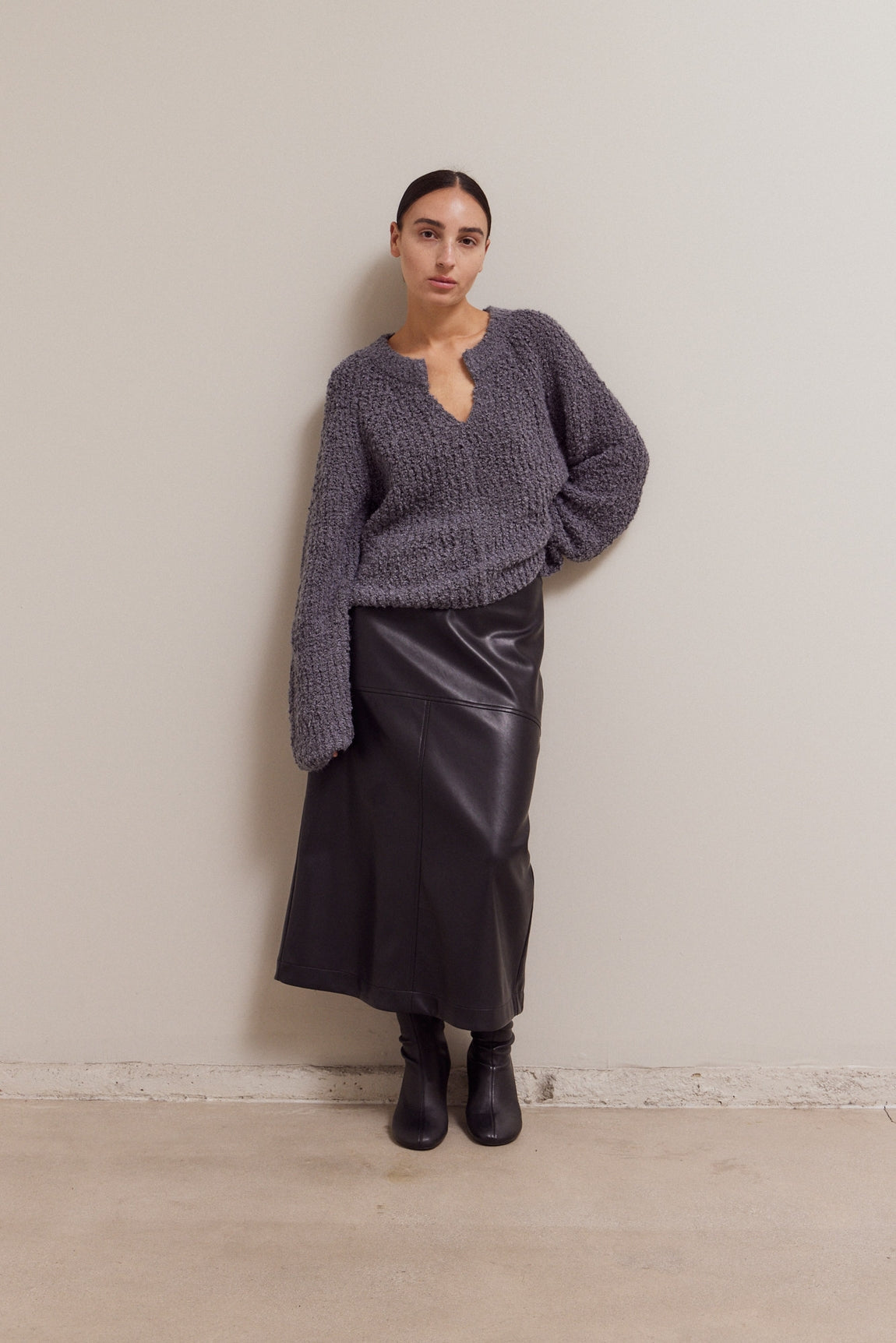 The Everwell Sweater is a timeless knit designed with quiet sophistication in mind. Crafted in a soft, textured boucle knit, it features a relaxed silhouette and a subtle split neckline that adds just the right amount of interest without feeling fussy. Cozy yet refined, this sweater transitions effortlessly from everyday wear to more elevated moments—styled with denim for a casual look or paired with tailored trousers or a leather skirt for a polished finish. An easy, versatile piece you’ll reach for season after season.