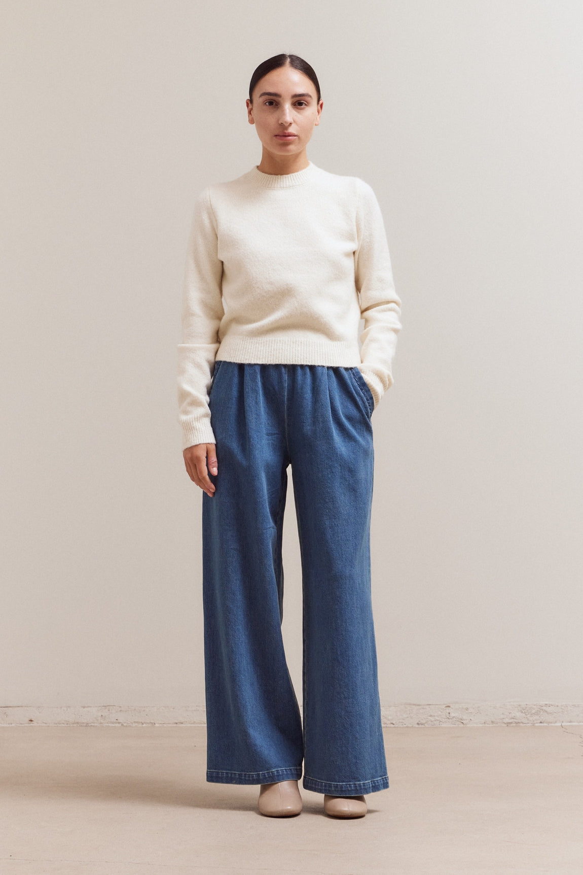 The Bramble Sweater is a basic crew neck with ribbed detailing on the neckline, sleeves and hem.