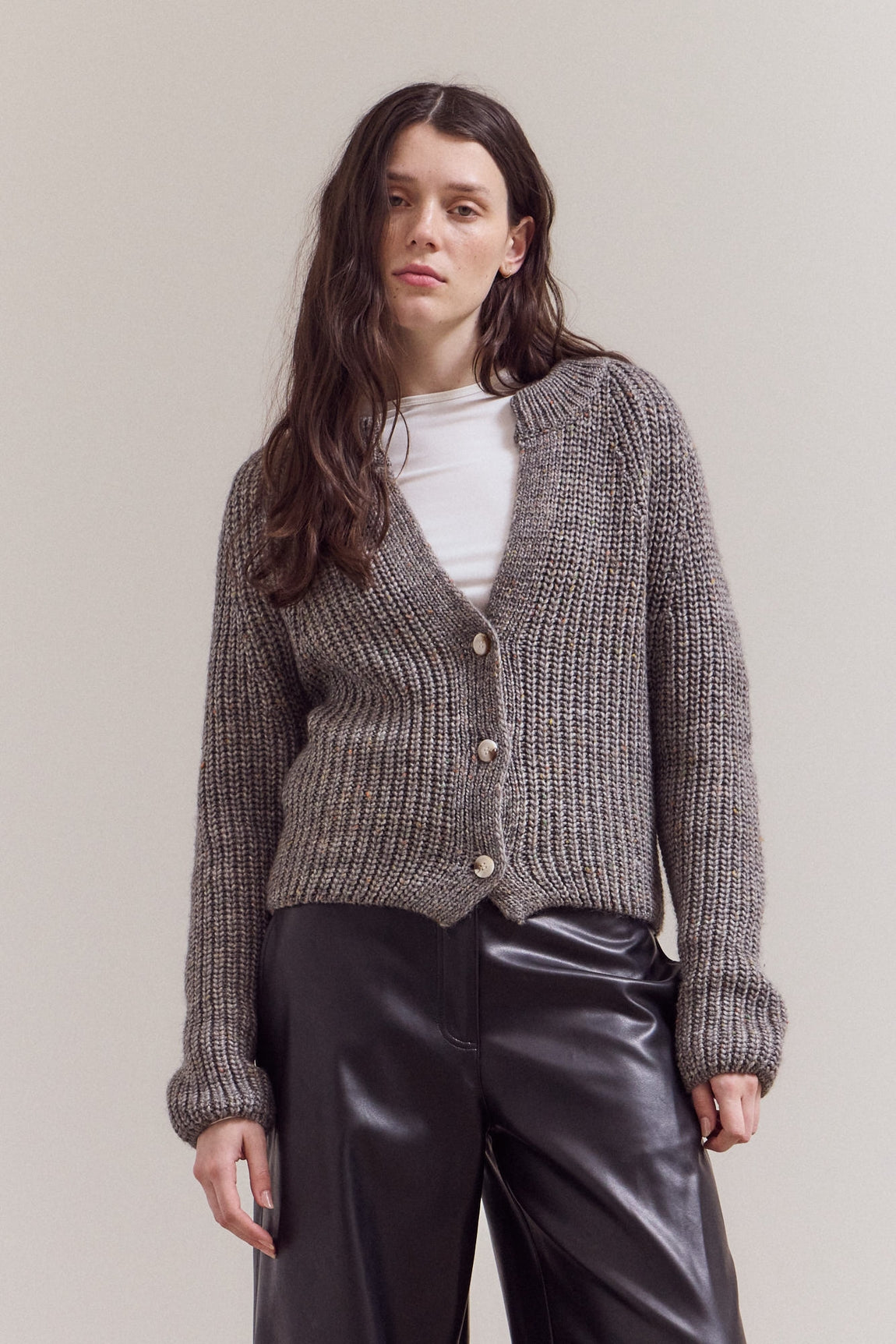 Cozy up in understated luxury in the Charleston Cardigan. With its chunky ribbed texture and relaxed fit, this piece strikes the perfect balance between comfort and sophistication. The subtle balloon sleeves and contrasting buttons add thoughtful detail, while the flattering cropped silhouette makes it ideal for layering over your favorite high-waisted denim or dresses.
