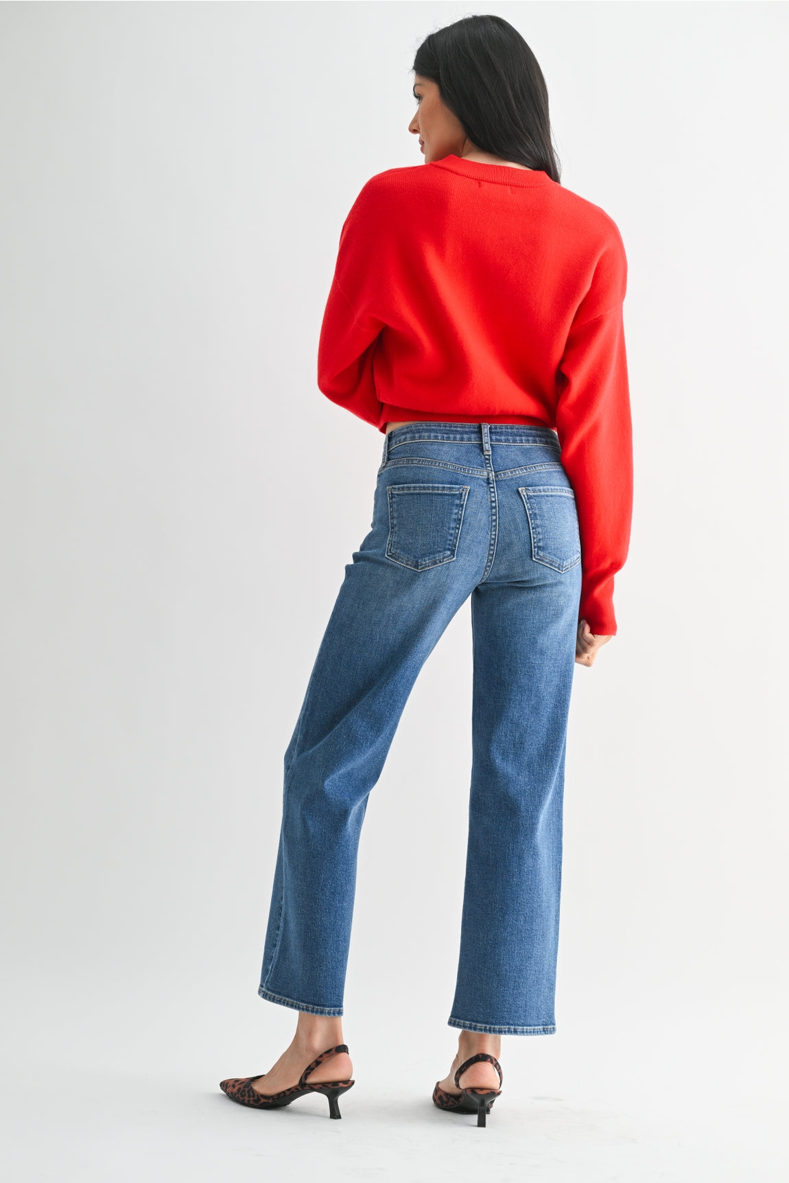 Meet your new everyday denim — classic, comfortable, and endlessly flattering. These jeans feature a mid-to-high rise waist and a slim wide leg for a modern, easygoing silhouette. Crafted from soft, premium stretch denim, they move with you while maintaining their shape all day long. The medium wash with subtle fading gives them a perfectly broken-in look that pairs effortlessly with everything from cozy knits to tailored blouses.