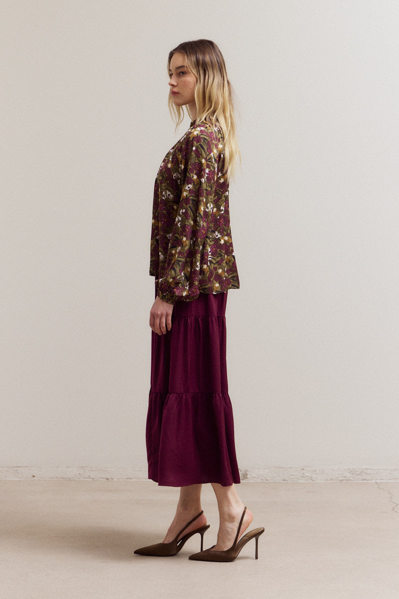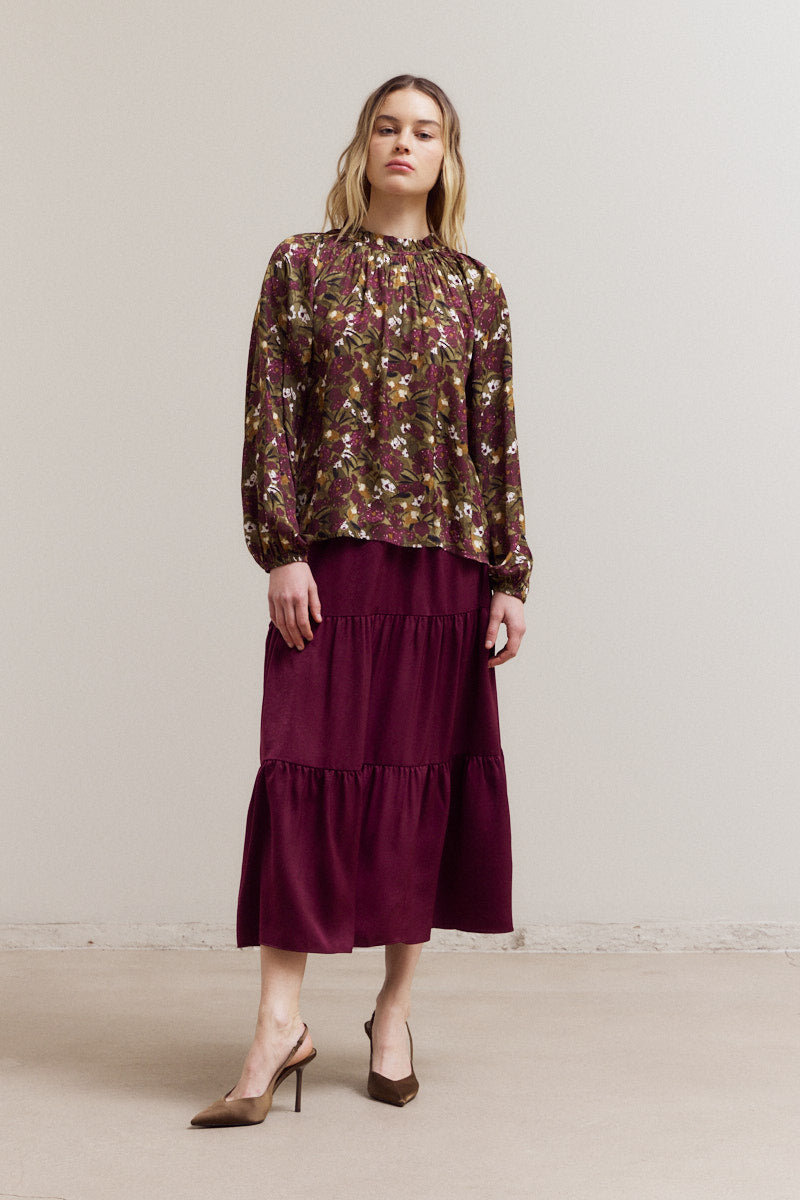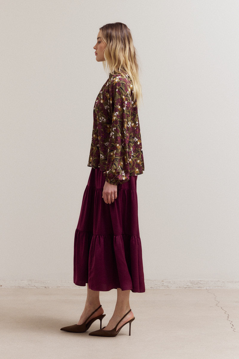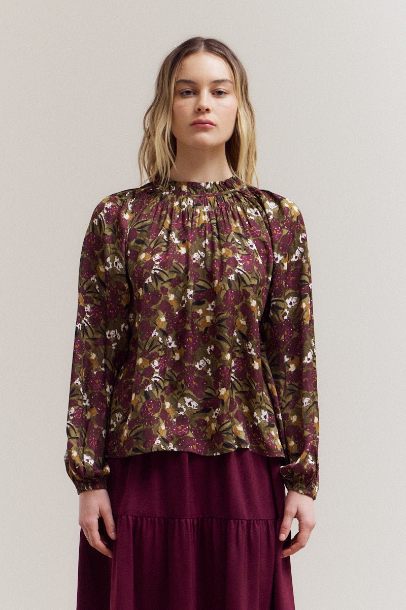 Introducing the Maren Top— a softly gathered, lightweight blouse that brings a touch of seasonal romance to your winter wardrobe. The deep berry, olive, and cream floral palette feels perfectly festive without being overdone, making it an effortless choice for holiday gatherings, family photos, or cozy dinners out.