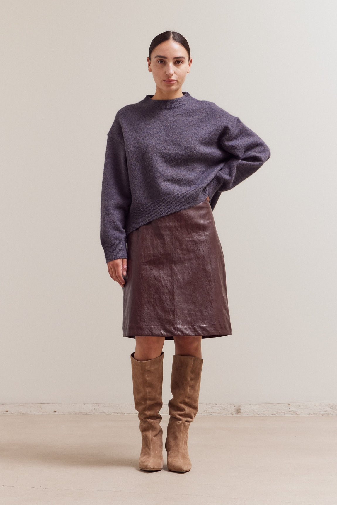 Cozy, soft, and beautifully understated, this deep plum sweater brings an elevated warmth to your winter wardrobe. The relaxed, boxy fit drapes effortlessly while the soft knit adds a plush, barely-there feel you’ll reach for daily. Finished with subtle ribbed trim and a slightly cropped hem, it pairs perfectly with high-rise denim, slip skirts, or layered under your favorite coat. A rich, versatile hue that feels both seasonal and timeless—your new go-to for chilly days and cozy nights.