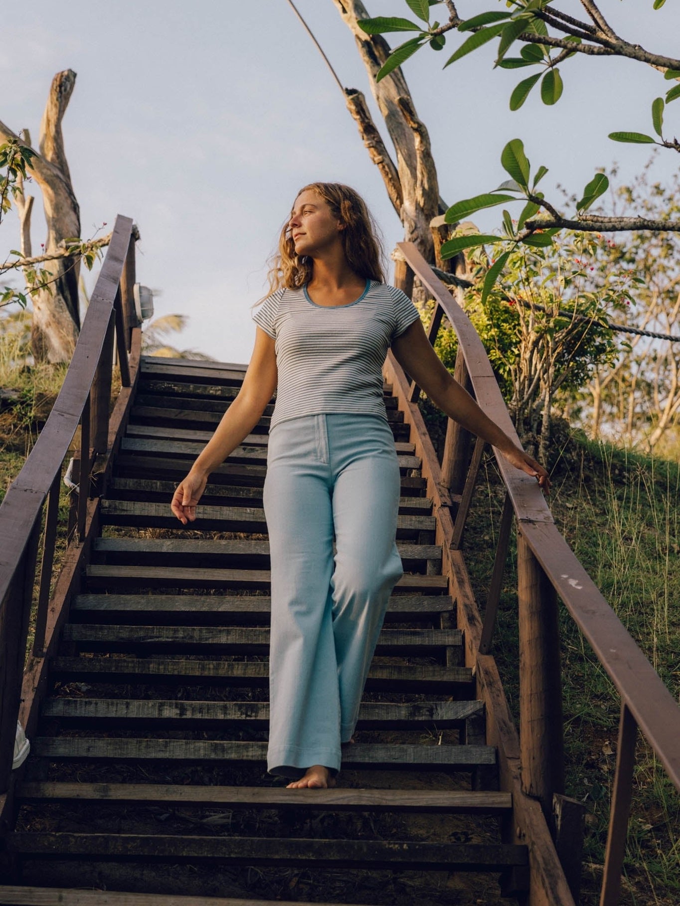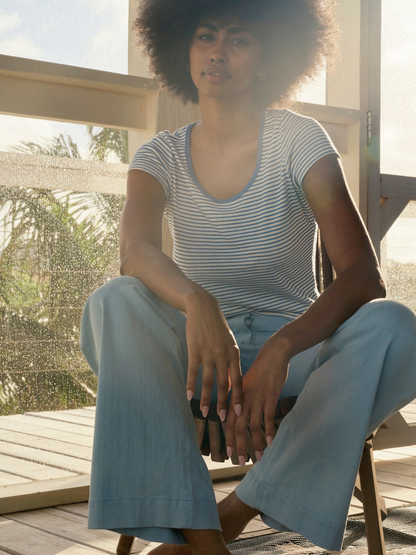 The Scoop Ribsy Tee features a flattering scoop neckline, soft ribbed texture, and a perfectly lived-in feel that hugs without feeling tight. The subtle stripe adds just enough interest while still being endlessly wearable.