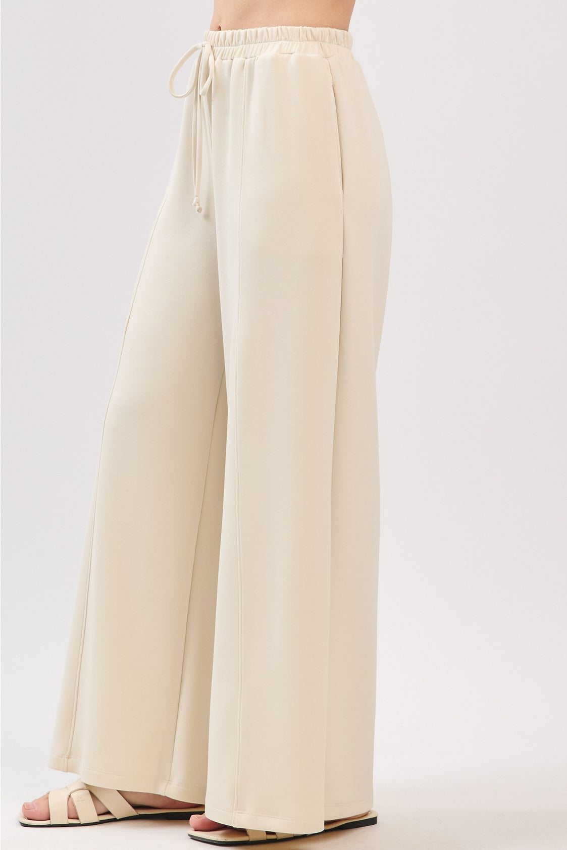 Soft structure meets everyday comfort in our Haven Wide Leg Pant. Designed with a relaxed silhouette and flattering high-rise elastic waistband, these flowy neutrals are the definition of effortless style. The wide leg drapes beautifully while subtle front seam detailing elevates the look beyond basic lounge wear.